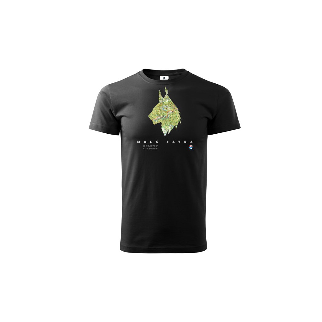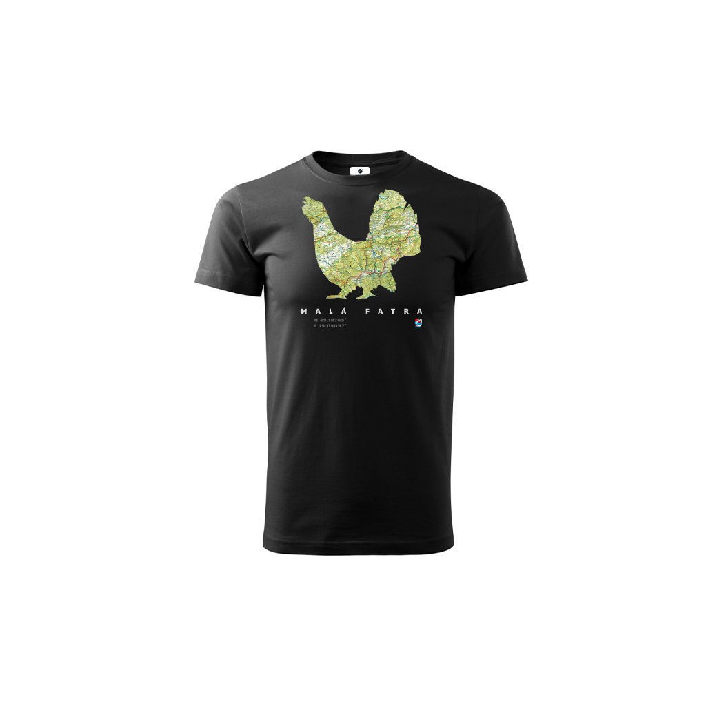 Čierne bavlnené tričko so siluetou a mapou Malej Fatry