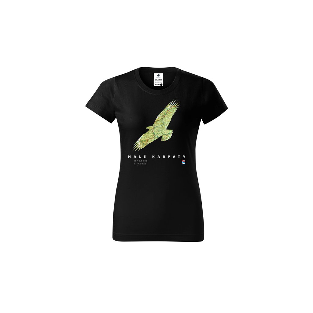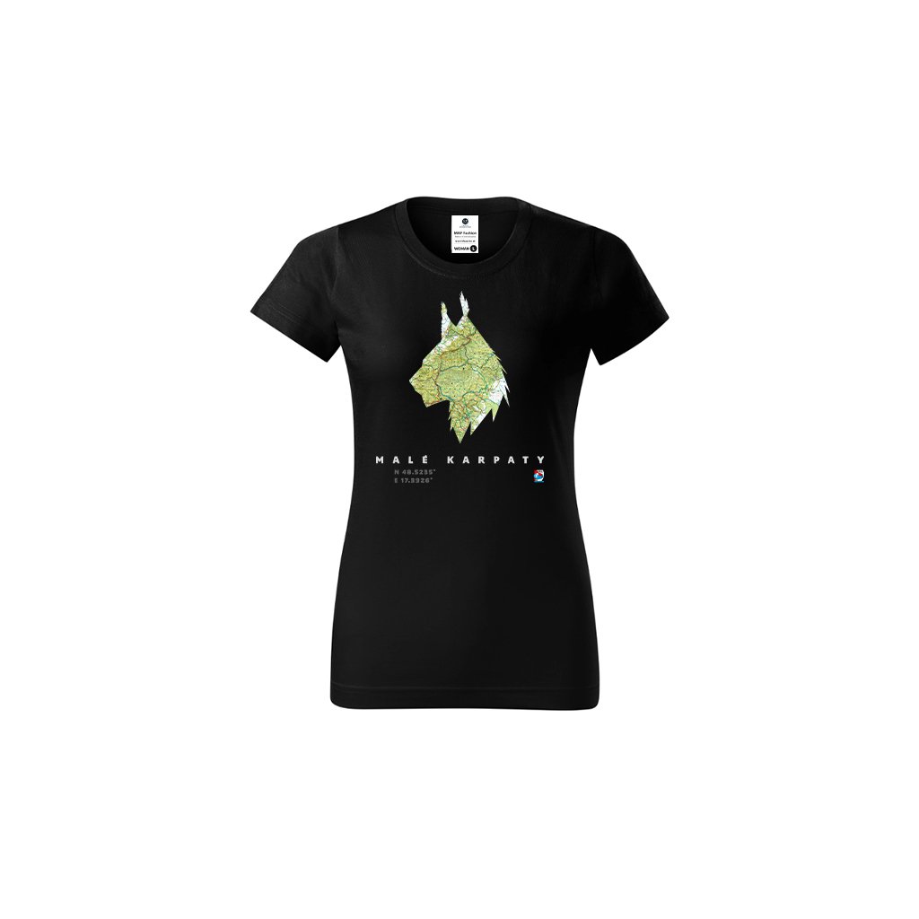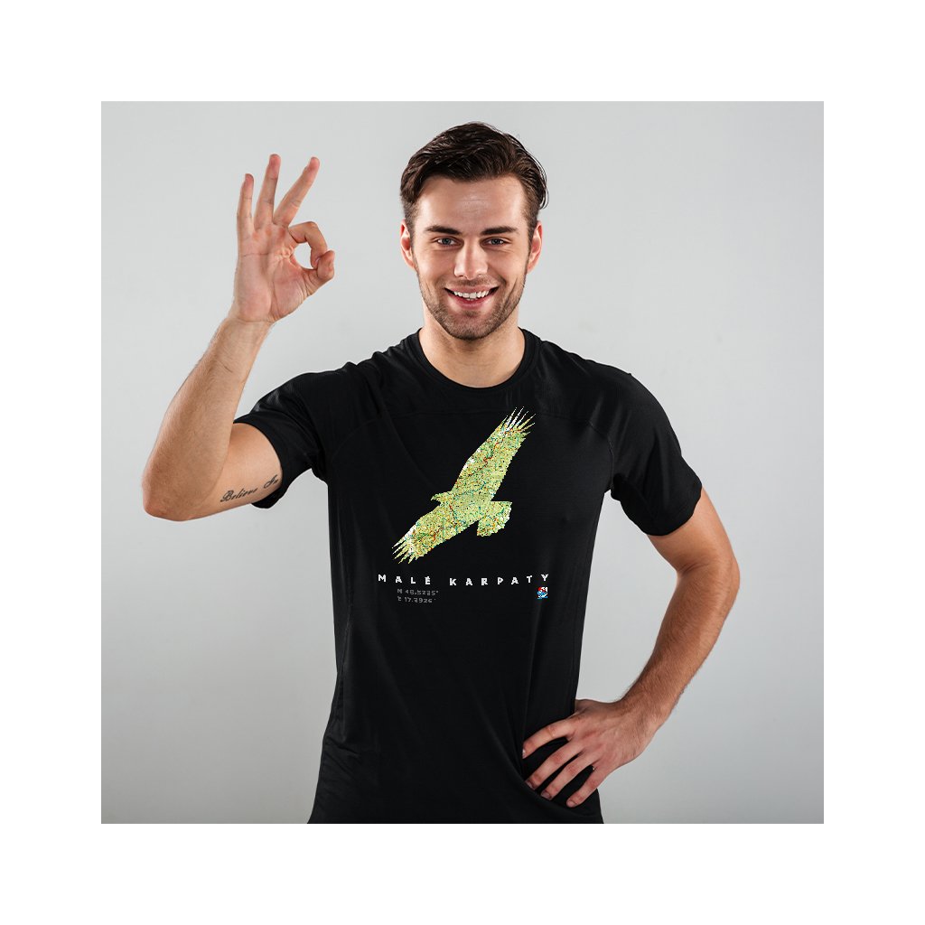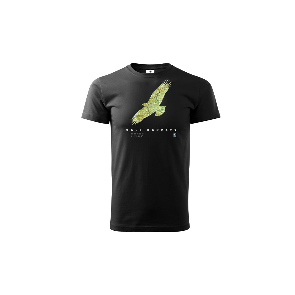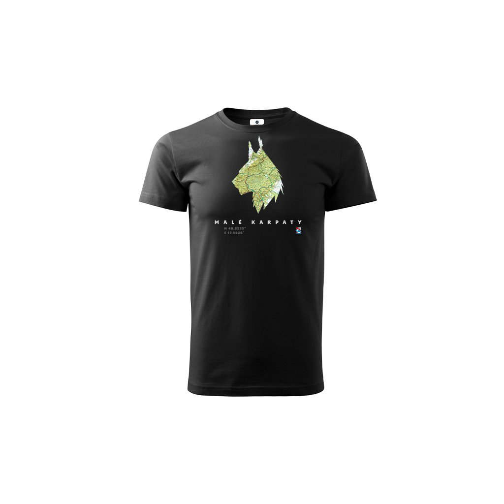 Čierne bavlnené tričko so siluetou a mapou Malých Karpát
