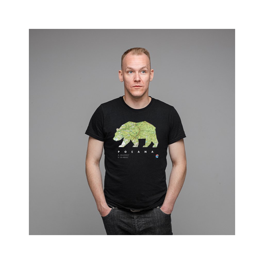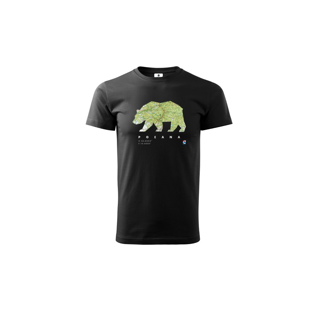 Čierne bavlnené tričko so siluetou a mapou Poľany