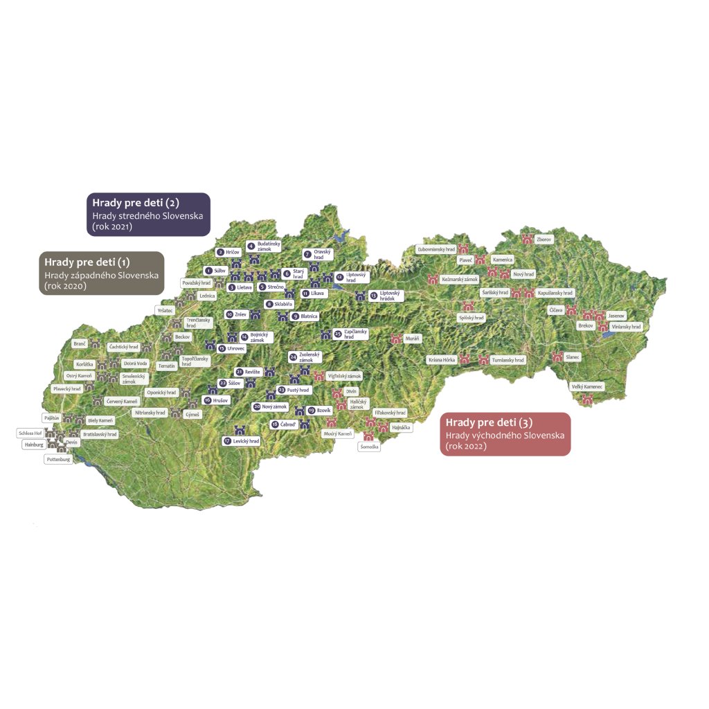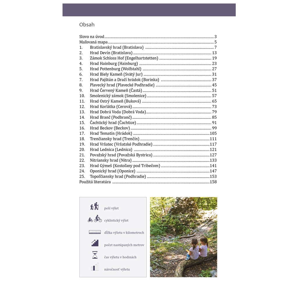 Hrady pre deti je ďalšou knihou v edícii Výlety s deťmi, ktorá ponúka 25 najkrajších výletov pre deti po hradoch západného Slovenska. Množstvo informácií, textov, fotografií a ilustrácií je ideálnym námetom na plánovanie rodinných výletov a zmysluplného trávenia voľného času s deťmi. Doplnkom knihy je aj maľovaná mapa západného Slovenska naznačenými výletmi na hrady. Súčasťou mapy sú nálepky jednotlivých hradov, ktoré si deti môžu lepiť do mapy. Kniha a mapa sú vložené do obalu a vytvárajú tak spolu jeden celok.
