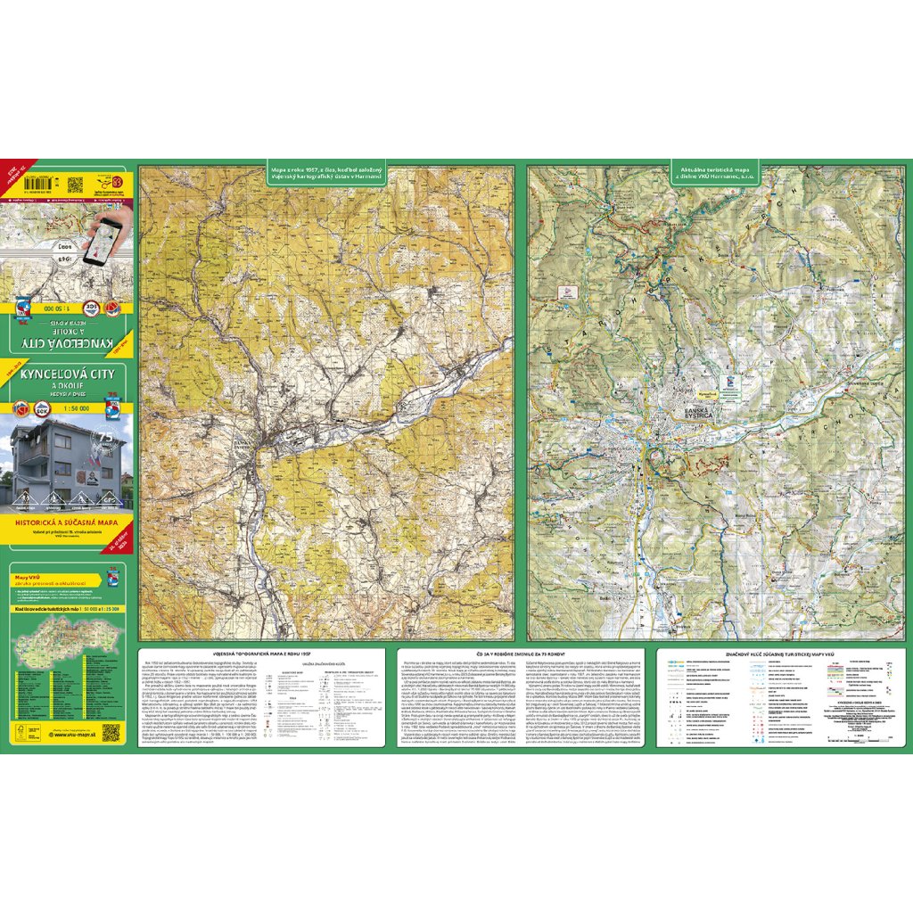 Aktuálnu turistickú mapu v tomto diele porovnávame s historickou mapou, ktorá pochádza z obdobia začiatkov kartografickej tvorby vo VKÚ. Takže môžeš porovnať, čo sa za trištvrte storočia v Kynceľovej a jej okolí zmenilo.?️ Na jednej strane sa môžete pokochať detailmi zobrazenia na mape z roku 1957, keď bol založený Vojenský kartografický ústav v Harmanci, zatiaľ čo na druhej strane vás očarí súčasná, precízna a aktuálna mapa z dielne VKÚ Harmanec, s.r.o. Pod oboma mapami nájdete zaujímavý text, ktorý vás prevedie cez najvýraznejšie zmeny, ktoré sa v regióne odohrali za 75 rokov.