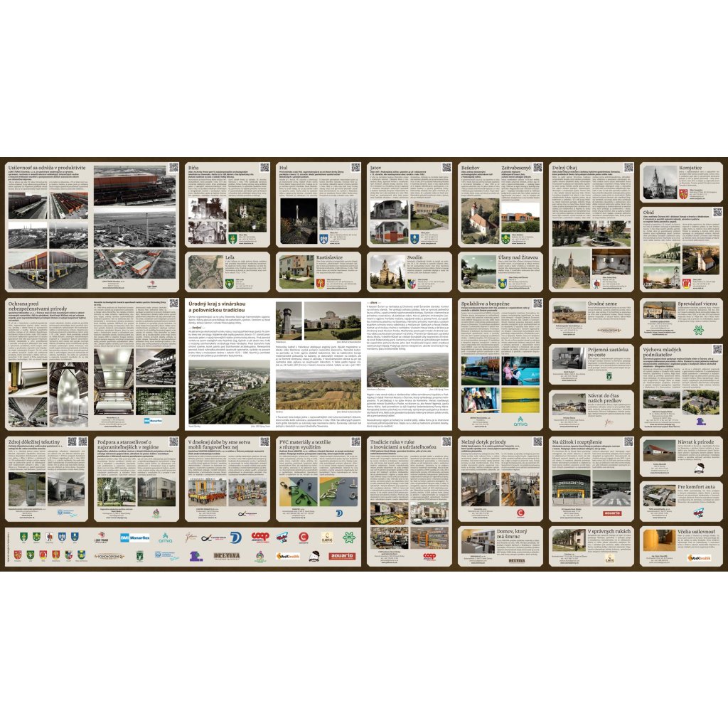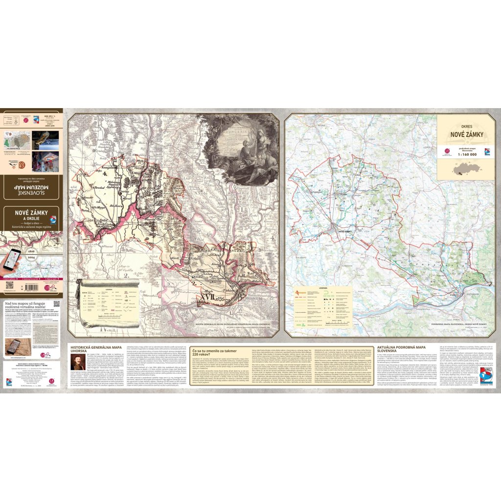 Na jednej strane sa môžete pokochať detailmi historického zobrazenia z pera slovenského, uhorského a európskeho kartografa Jána Lipského na mape "Mappa generalis regni Hungariae" z roku 1806, zatiaľ čo na druhej strane vás očarí súčasná, precízna a aktuálna mapa od VKÚ Harmanec. Pod oboma mapami nájdete zaujímavý text, ktorý vás prevedie cez najvýraznejšie zmeny, ktoré sa v regióne odohrali za uplynulé storočia.