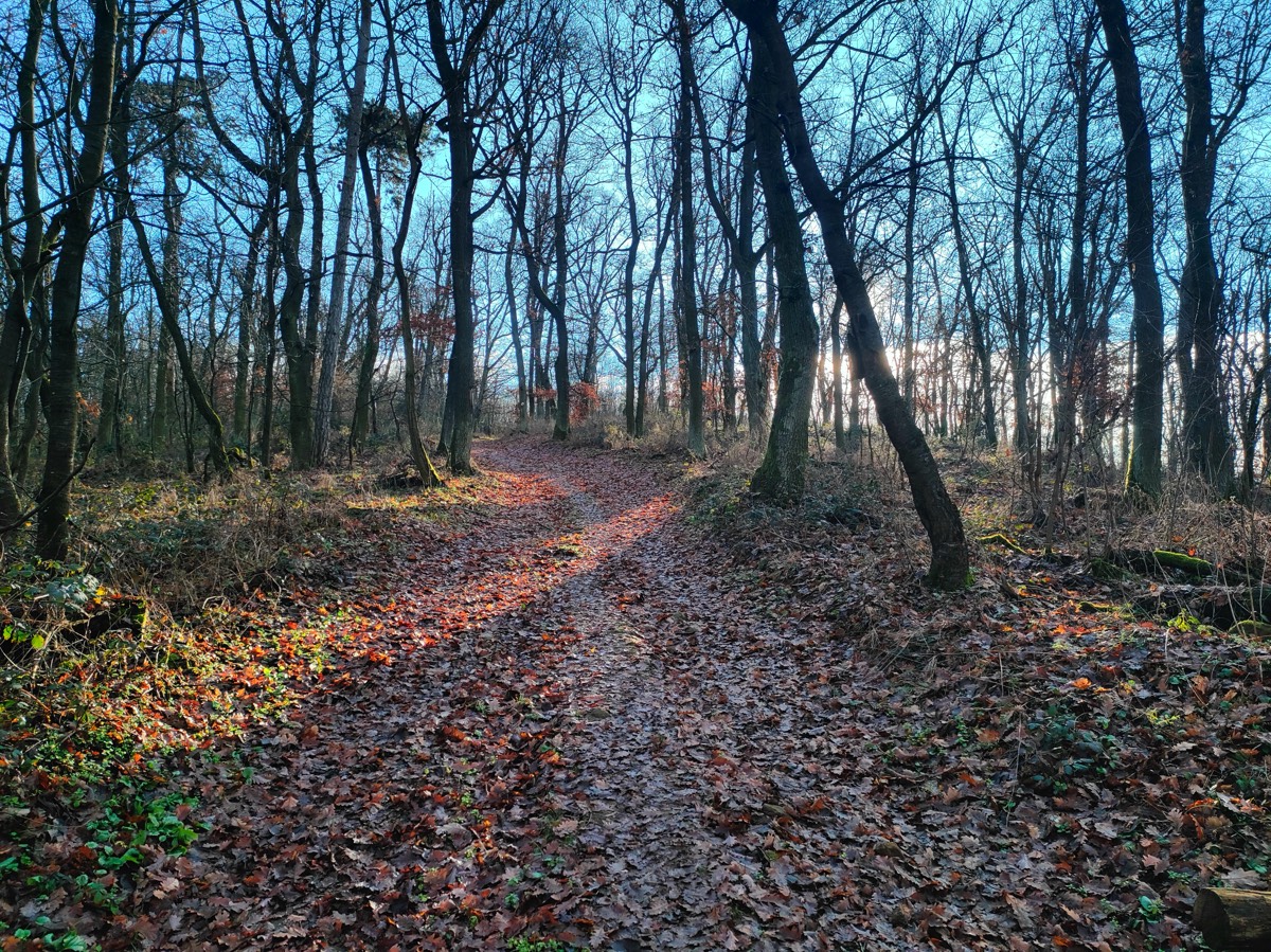 Aktuálne panuje príjemné počasie a tak je o to viac prekvapivé, že nikoho okrem nás nestretávame. Kráčame po lesnej ceste a musíme si dávať pozor, aby sme sa nezošmykli do jednej z mnohých mlák, ktoré tu aktuálne sú. Počas suchších dní to ale musí byť takmer idylická prechádzka týmto lesom. Postupne prichádzame ku smerovníku s označením „Rázcestie pod Plešovicou“. Sme v nadmorskej výške 246 m. Máme aj rozhľad na okolité kopce Kozmálovských vŕškov ako sú Ostrovica a Zadný vrch. Z tohto bodu začína mierne stúpanie, keďže doteraz sme išli viacmenej rovinatým terénom.