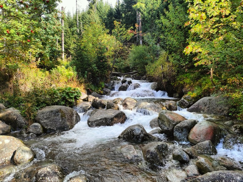 V minulosti sme už touto trasou išli ale vtedy sme to spojili s Východnou Vysokou. Vtedy nebol priestor si vychutnávať okolie ale teraz sme mali k dispozícii viac času. Spoznávali sme les novými pohľadmi a zamerali sme sa na veci, ktoré nám predtým ušli. Les ponúka nádherné zákutia a čoskoro ide popri nás aj Velický potok. Miestami ponúka divokú rozbúrenú vodu, ktorá je dravejšia než obvykle, keďže posledné dni výdatne pršalo. Prichádzame ku smerovníku s označením „Rázcestie na Velickom plese“. Sme vo výške 1 304 m n. m. a spravíme si kratšiu prestávku v turistickom prístrešku, ktorý sa tu nachádza.