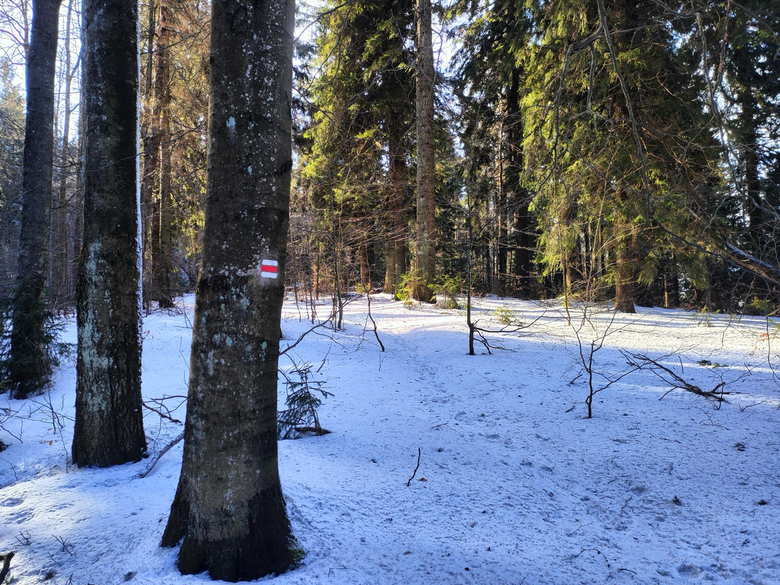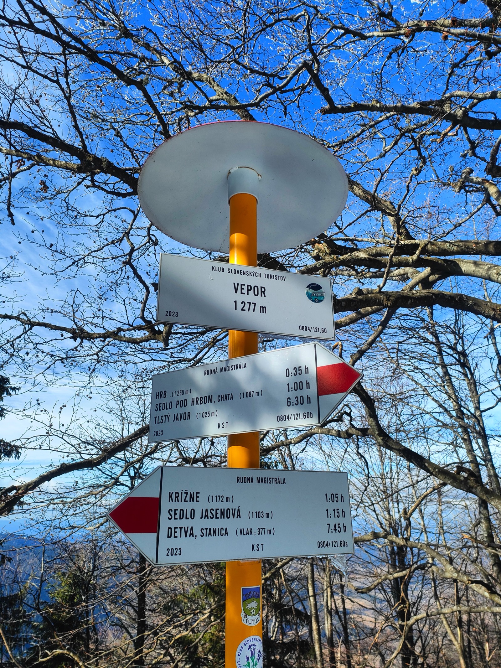Postupne odchádzame z Hrbu, geografického stredu Slovenska, a neustále sme očarení z výhľadov, ktoré sme mali možnosť zažiť. Už teraz vieme, že tento výstup v nás bude dlho rezonovať, pretože má v sebe takú neopakovateľnú atmosféru. Doposiaľ sme nestretli žiadneho turistu a nič nenasvedčuje, že by sa na tom malo niečo meniť. V snehu rozoznávame stopy len jedného človeka ale aj tie môžu byť staré už niekoľko dní. Kráčame červeným chodníkom, ktorý označuje Rudnú magistrálu. Tá spája Zlaté Moravce s vrcholom Stolice. Vedie Pohronským Inovcom, Štiavnickými vrchmi, Javorím, Poľanou, Veporskými vrchmi, Muránskou planinou a Stolickými vrchmi, čo značí, že turista si na tomto chodníku užije množstvo prírodných krás.