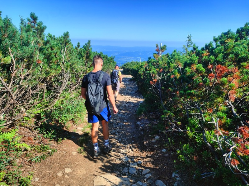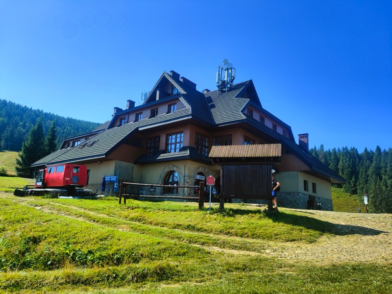 Nohy a lýtka dostávajú zabrať a v duchu si vravíme, že sme radi za to, že tadiaľto ideme „len“ dole. Počas cesty na Pilsko by sme pravdepodobne zvolili príjemnejšie stúpanie žltým chodníkom. Okolo nás sú lyžiarske vleky a zjazdovky, pretože ide o známu lokalitu ideálnu na vyžitie počas zimných mesiacov a solídnej snehovej nádielky. Z diaľky už rozpoznávame obrysy chaty, ktorá sa každým ďalším krokom javí väčšia a väčšia. Vidíme tu aj množstvo ďalších turistov a ani sa nečudujeme, pretože je tu naozaj nádherne.